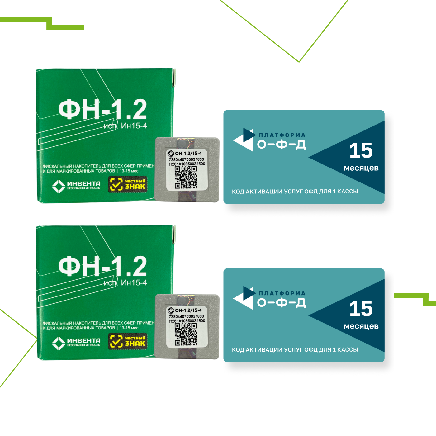 Купить 2 комплекта: Фискальный накопитель на 15 месяцев (ФН-1.2) + код активации ОФД Платформа (Эвотор) на 15 месяцев