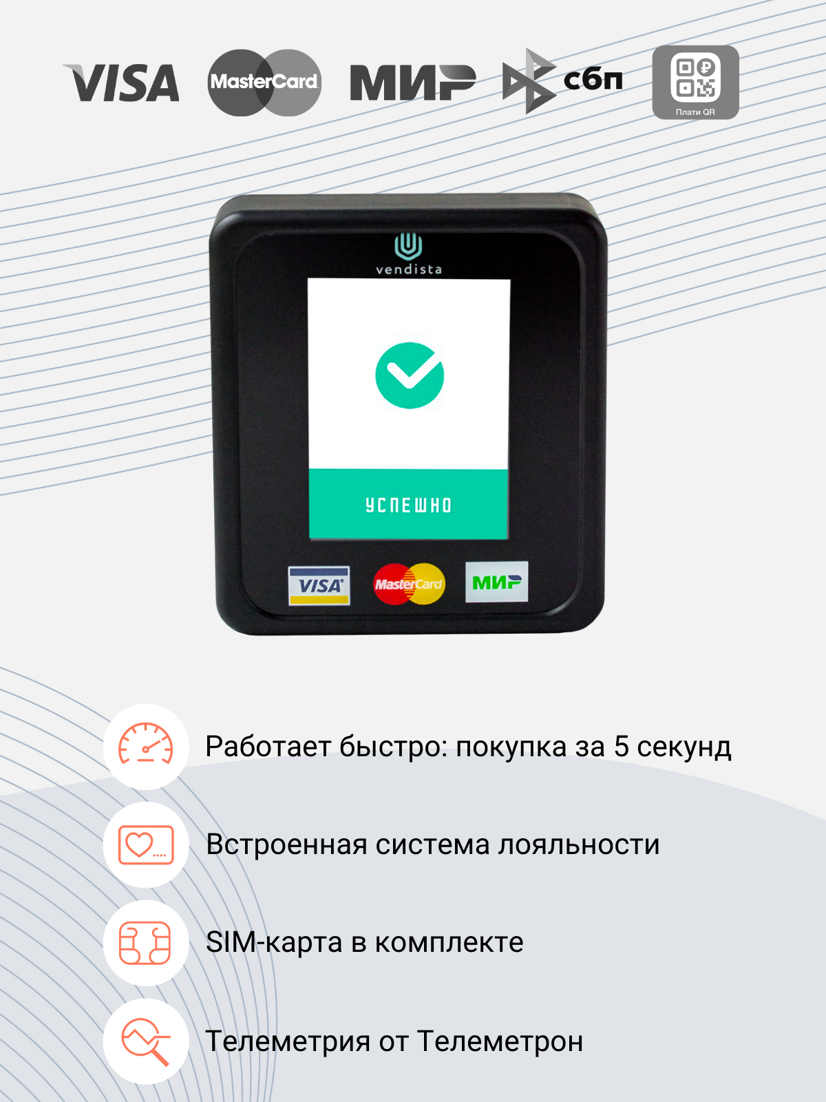 Терминал безналичной оплаты Vendista 2.5/ Вендиста 2.5 / эквайринг / смарт- терминал / оплата картой интересное: