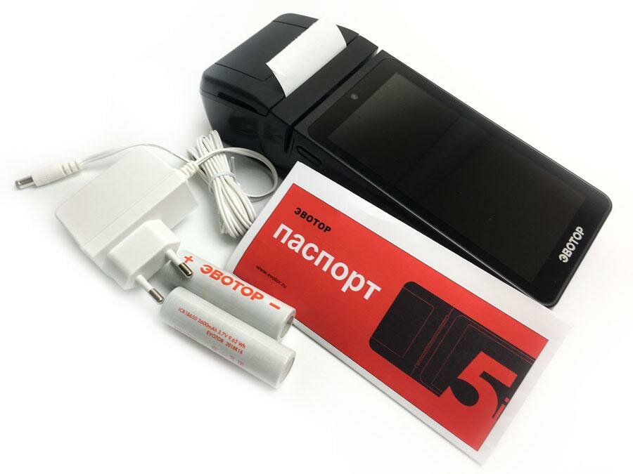 | Комплектация | кассовый аппарат со встроенным эквайрингом Эвотор 5i, блок питания, аккумуляторы 2 шт., фискальный накопитель 36 месяцев |