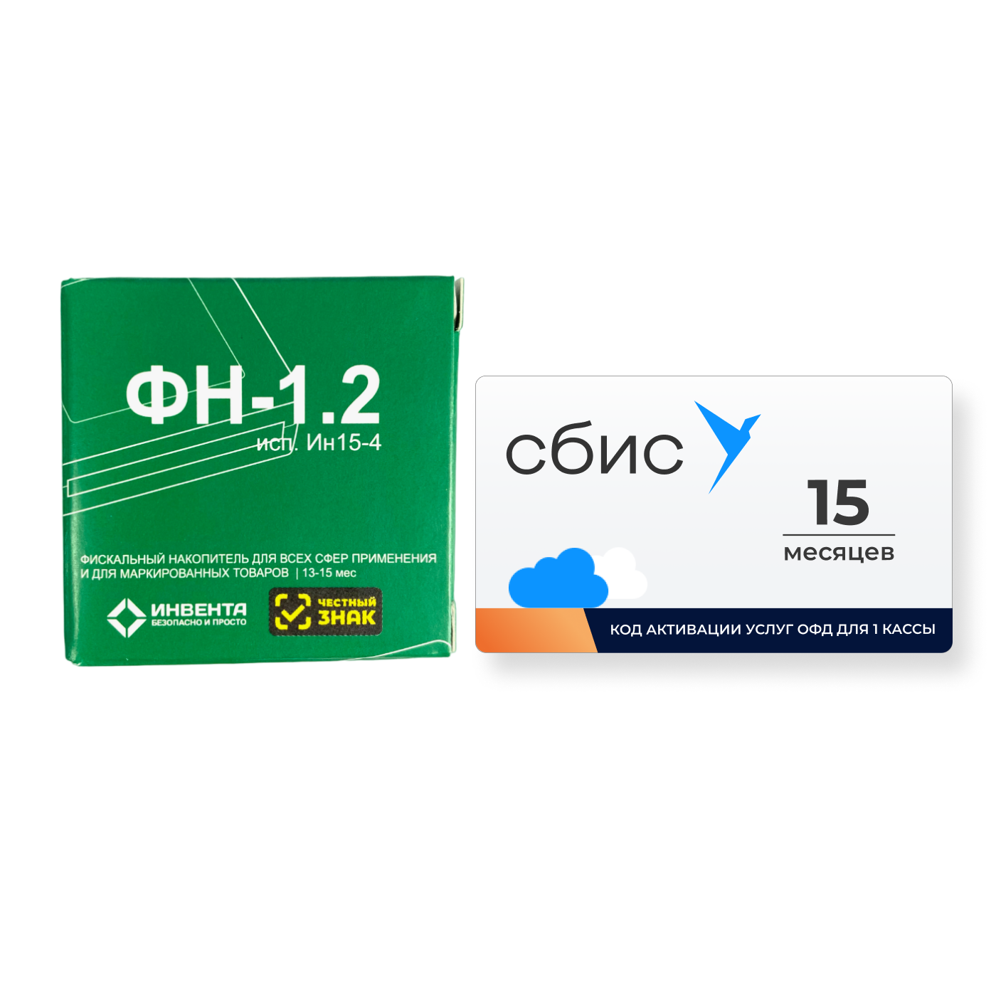 | Комплектация | Фискальный накопитель ФН-1.2 на 36 месяцев Инвента + Код ОФД Сбис (Тензор) на 36 месяцев |