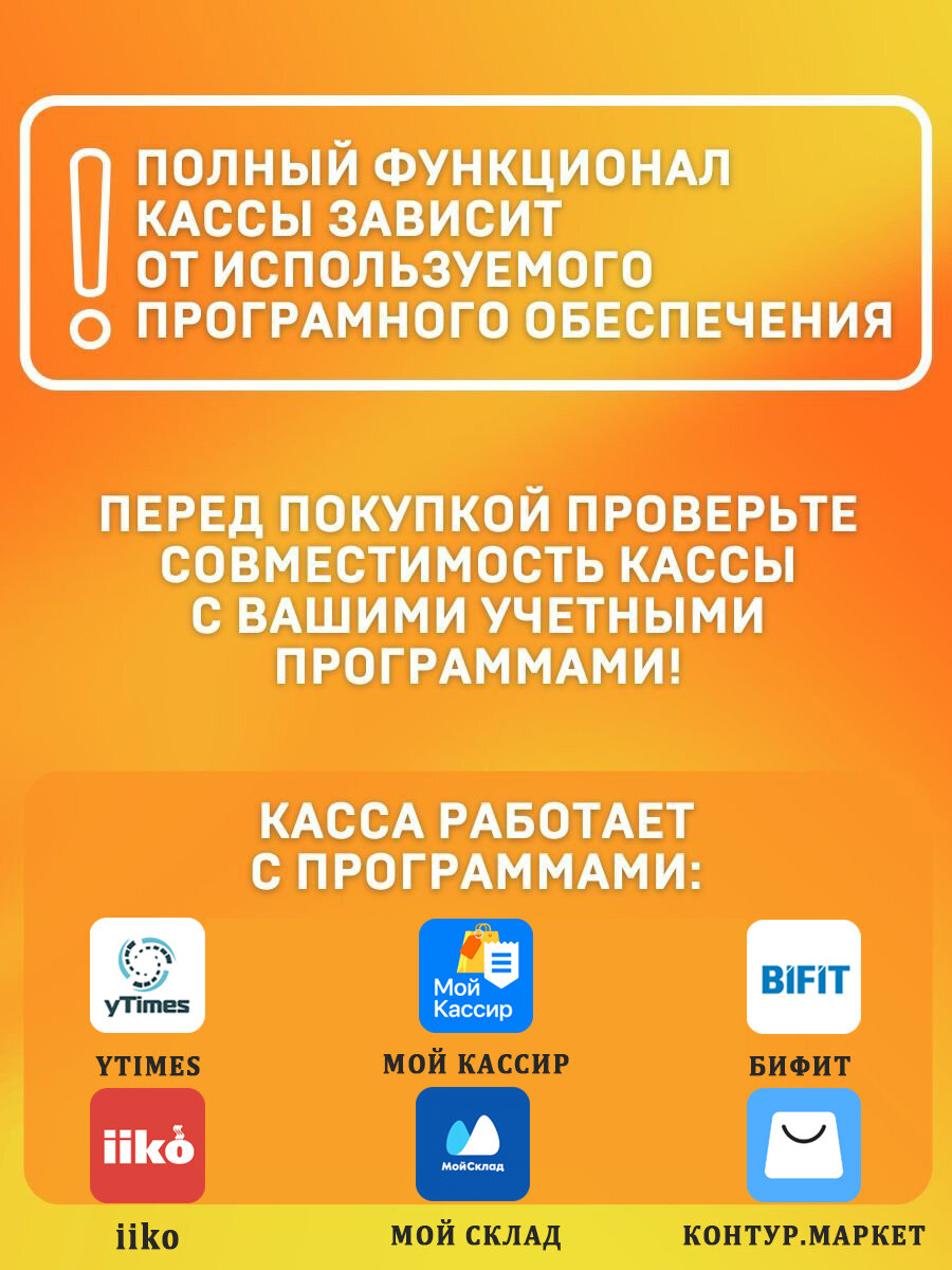 | Комплектация | касса; зарядное устройство; паспорт; рулон термобумаги |