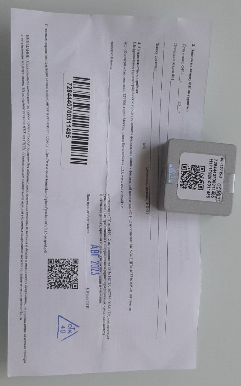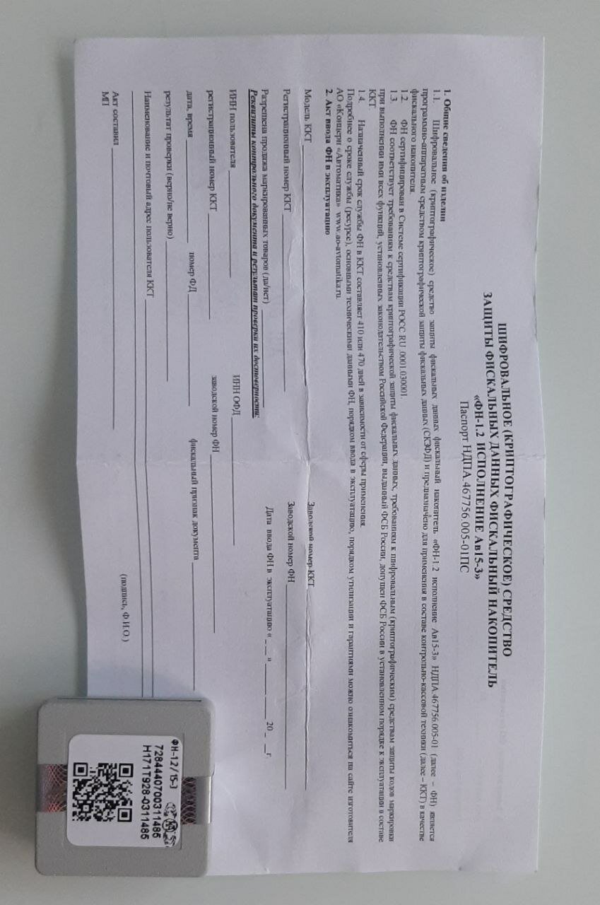 Фискальный накопитель ФН1.2 интересное: