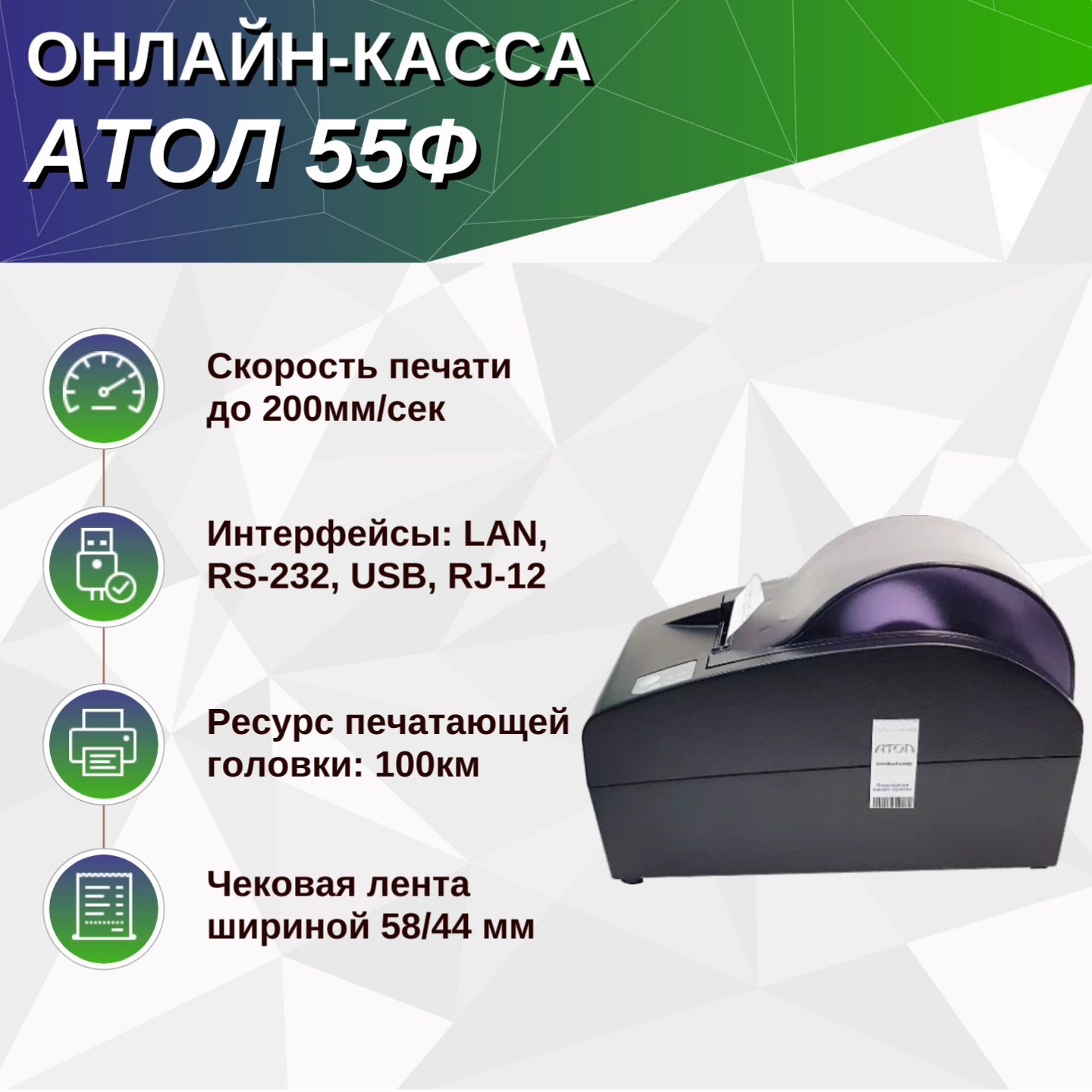Онлайн-касса АТОЛ 55Ф. Черный. Без ФН. USB. RS-232. Ethernet. 5.0 (Фискальный регистратор) интересное: