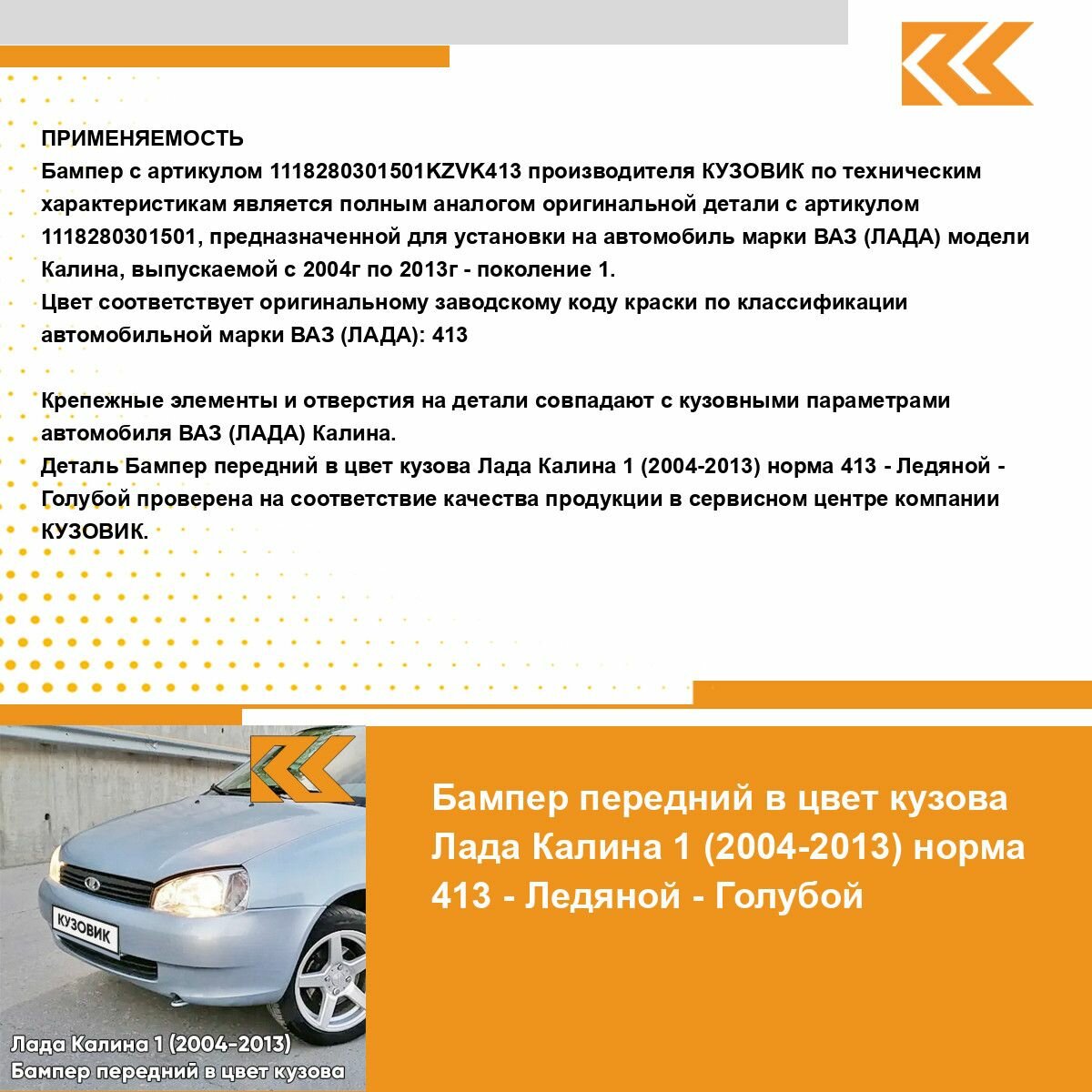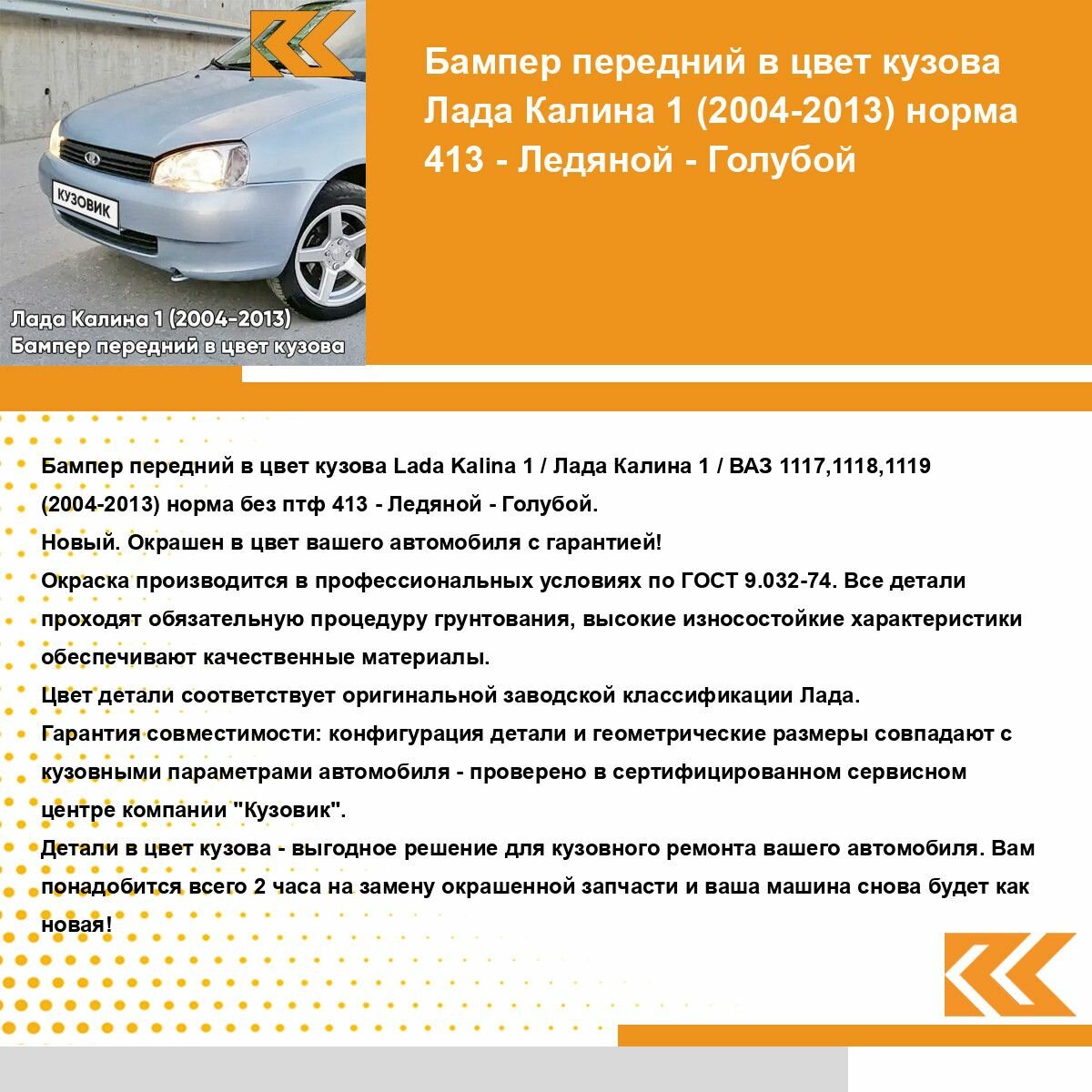 Бампер передний в цвет кузова Лада Калина 1 норма 413 - Ледяной - Голубой интересное: