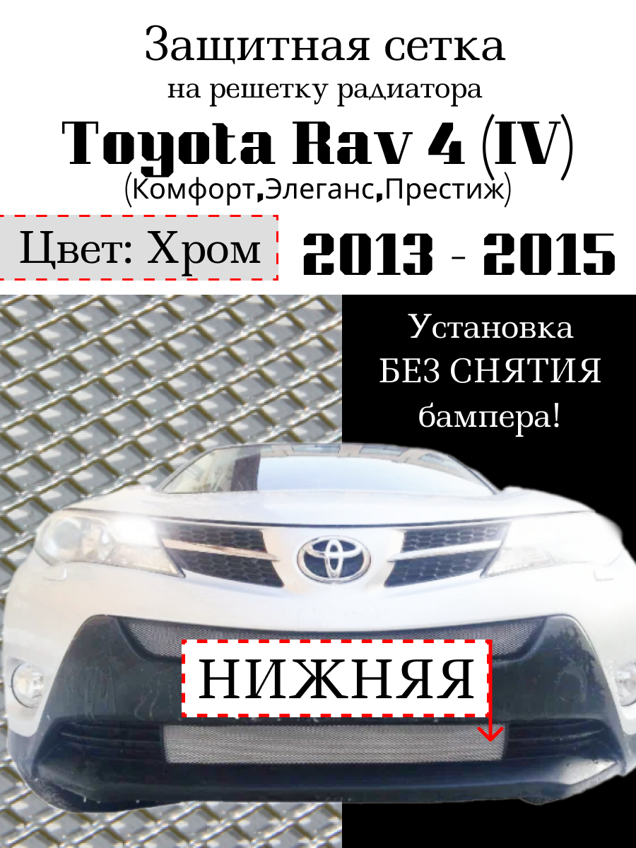 Защита радиатора (защитная сетка) Toyota Rav 4 (Комфорт,Элеганс,Престиж) 2013-2015 хромированная нижняя интересное: