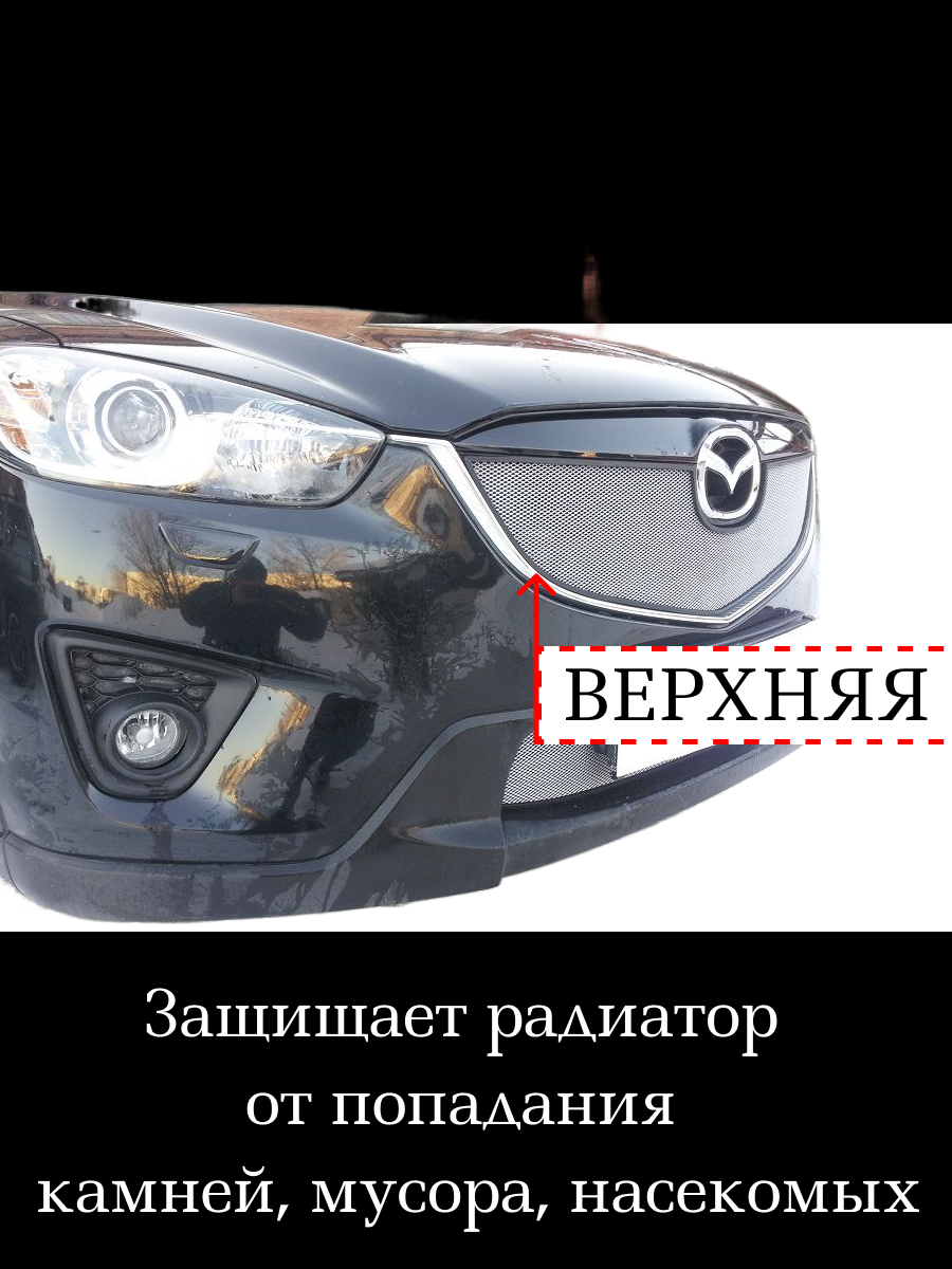 Защита радиатора (защитная сетка) Mazda CX5 2012-2015 верхняя хромированная интересное: