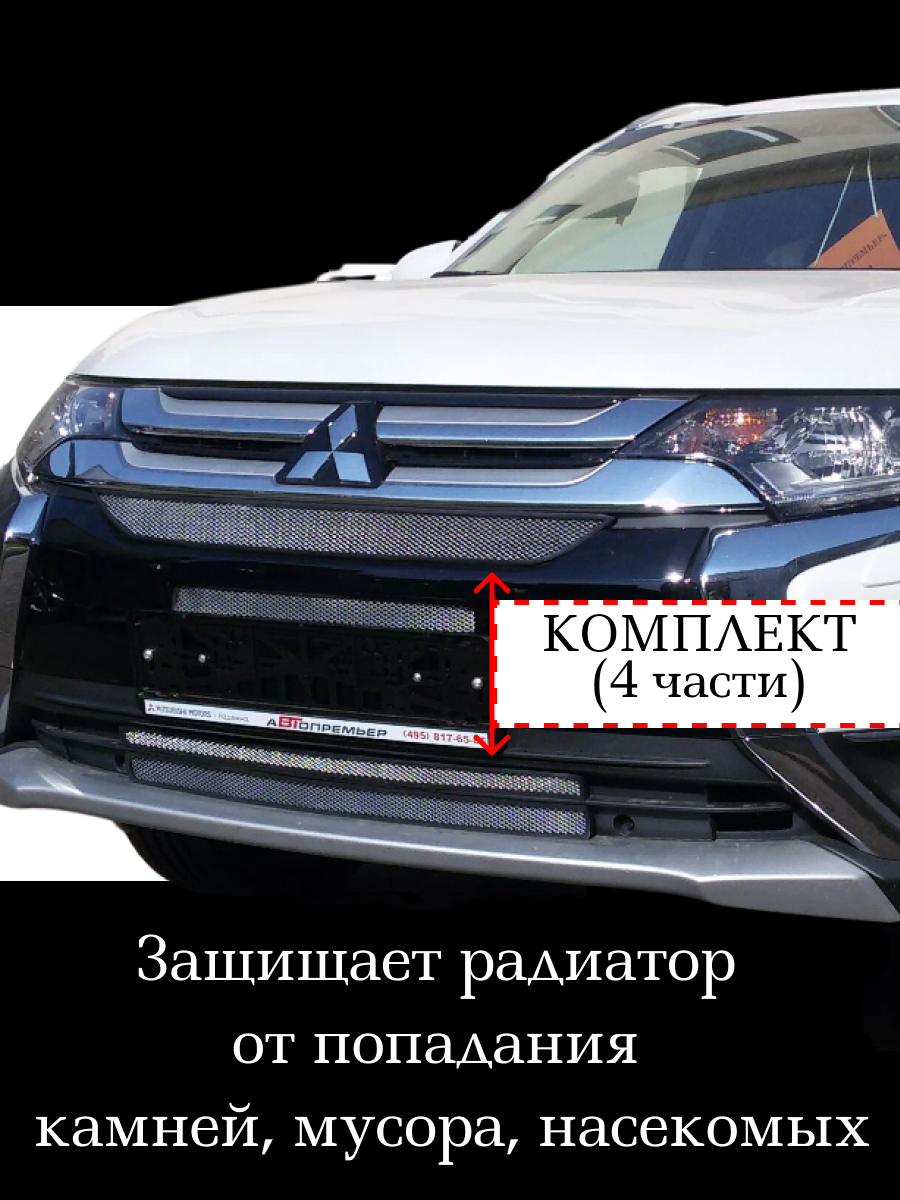Защита радиатора (защитная сетка) Mitsubishi Outlander III 2015-2018 (рестайлинг) хромированная 4 части интересное: