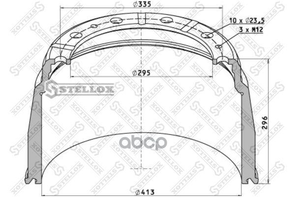 STELLOX 8500029SX 85-00029-SX_торм.барабан !413x203/212 H=296 d=295 10n-335-d23/23.5 \Scania
