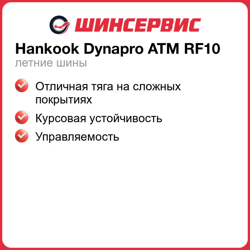 СохранитьЛетние шины Hankook Dynapro ATM RF10 205/80 R16 104T, XL интересное: