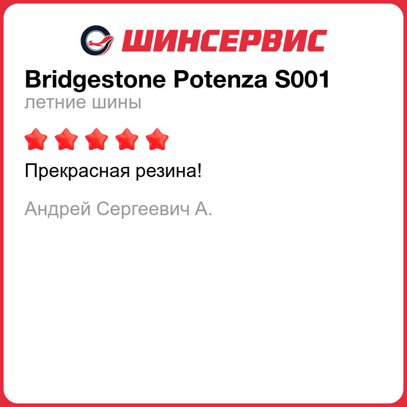 От Bridgestone Potenza S001 ожидаю надёжную службу как и было ранее. Всем спасибо за внимание. |