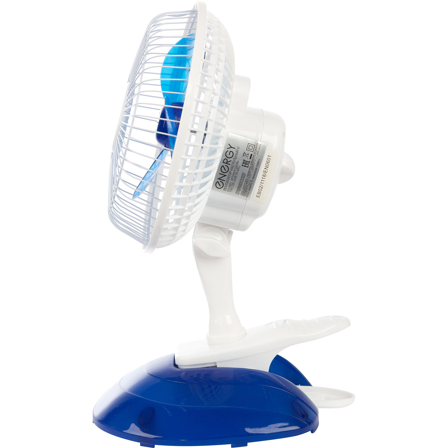 Вентилятор EN-0601 настольный на прищепке 15 см 15 Вт, цвет Синий с белым