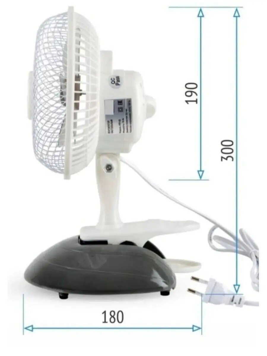 Вентилятор настольный Centek CT-5003 Белый, диаметр 19 см, металлическая решётка, клипса