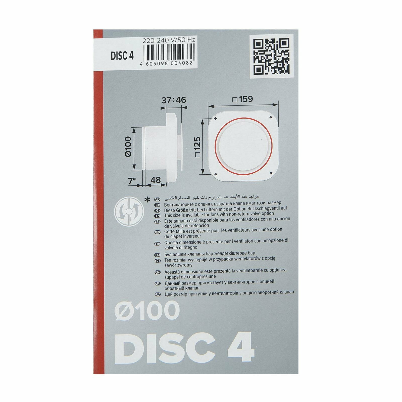 Купить Вентилятор вытяжной ERA DISC 4, 160х140 мм, d=100 мм, 220-240 В 4859336