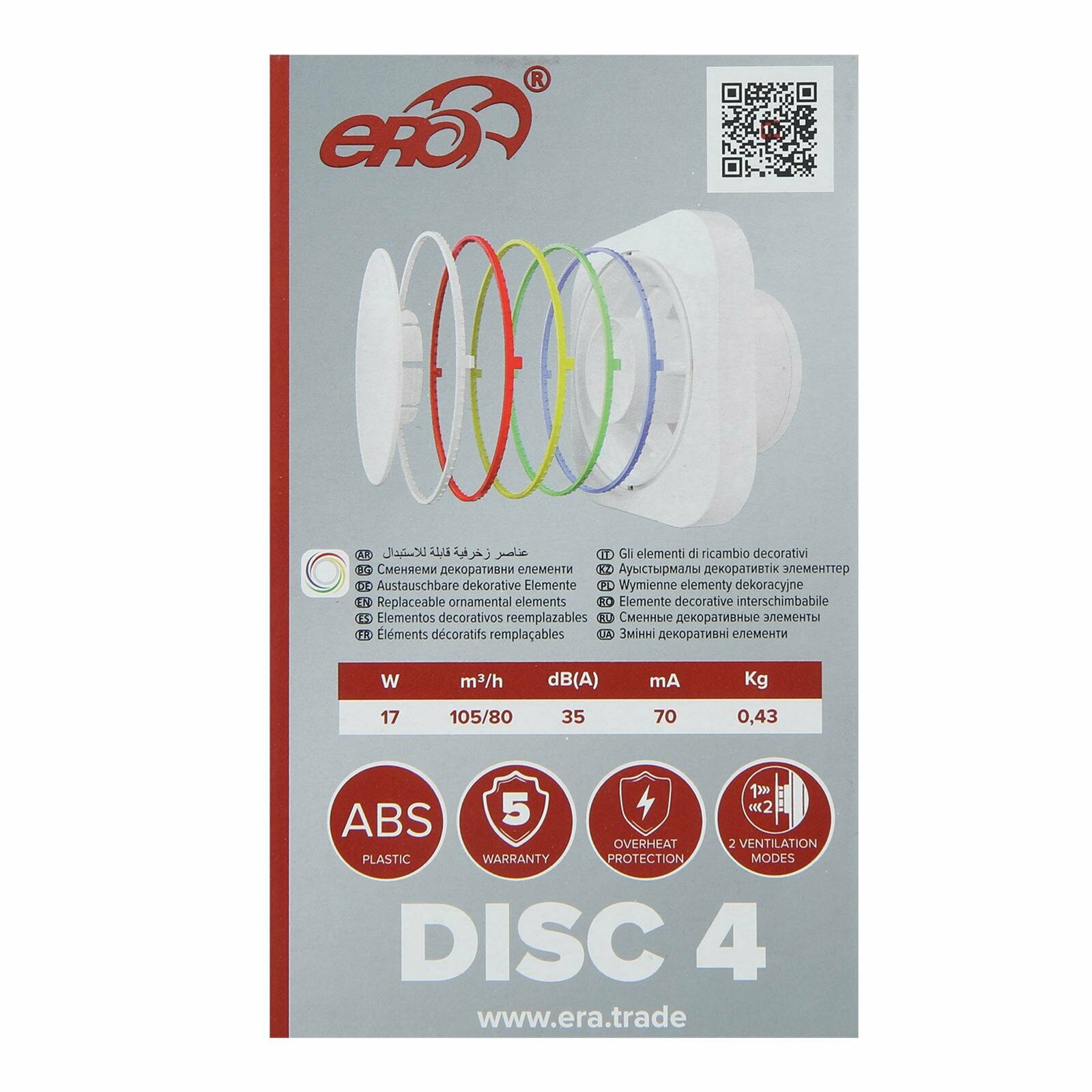 Ниже Вы можете прочитать отзывы на Вентилятор вытяжной ERA DISC 4, 160х140 мм, d=100 мм, 220-240 В 4859336, ознакомится с подробными характеристиками, посмотреть интересные обзоры и фотографии на Вентилятор вытяжной ERA DISC 4, 160х140 мм, d=100 мм, 220-240 В 4859336.