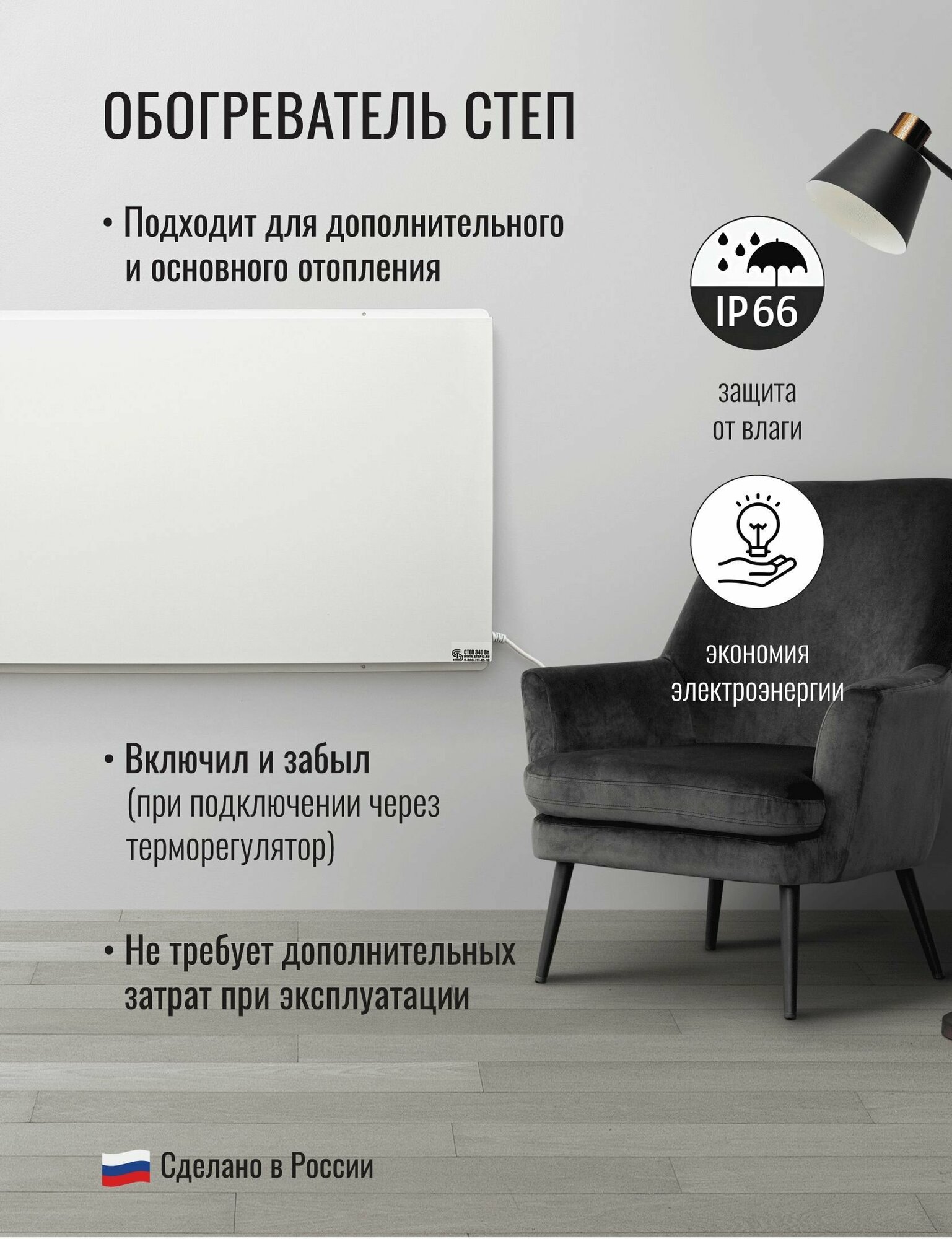 Обогреватель для дома инфракрасный СТЕП-250/0.96 x 0.52 настенный, бытовой для комнаты, обогрев помещения, бесшумный с мощностью 250 вт