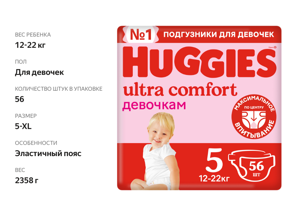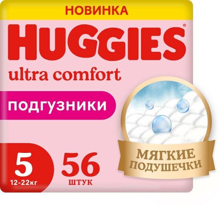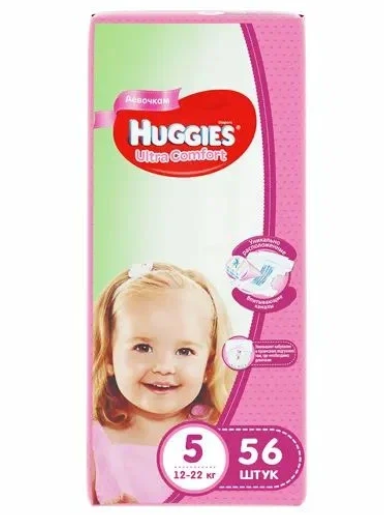 Huggies подгузники Ultra Comfort для девочек 5 (12-22 кг), 56 шт.