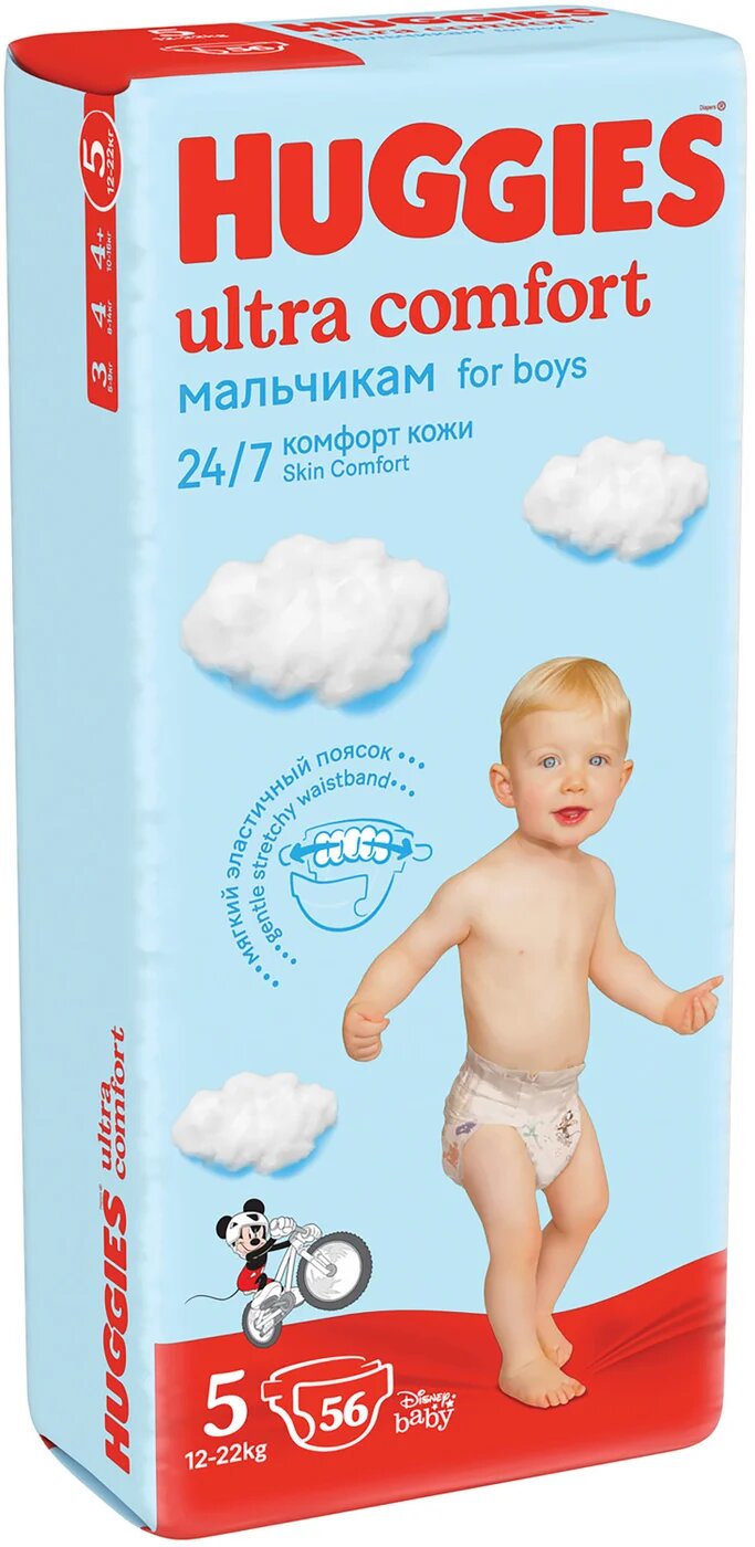 СохранитьПодгузники для мальчиков Huggies Ultra Comfort 5(12-22кг), 56шт интересное: