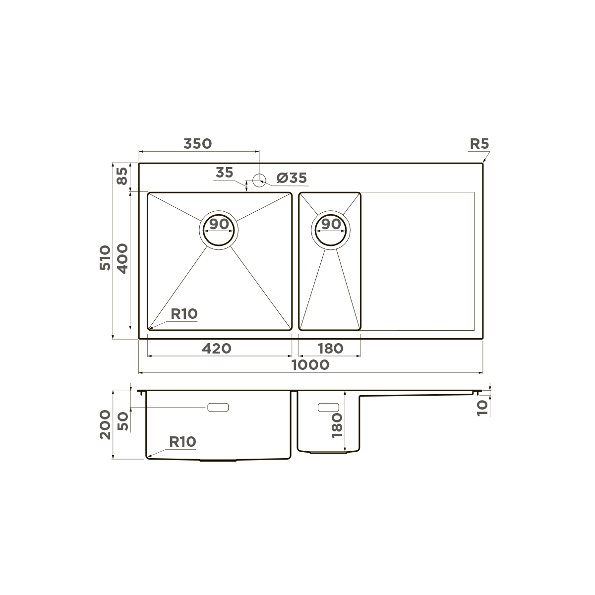 Кухонная мойка OMOIKIRI Akisame 100-2-GM-L 4973103 (1000 x 510 мм), врезная, нержавеющая сталь, вороненая сталь