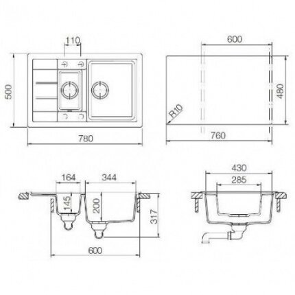 СохранитьВрезная гранитная кухонная мойка Schock Aster 60D 780x500, оникс интересное:
