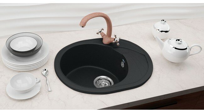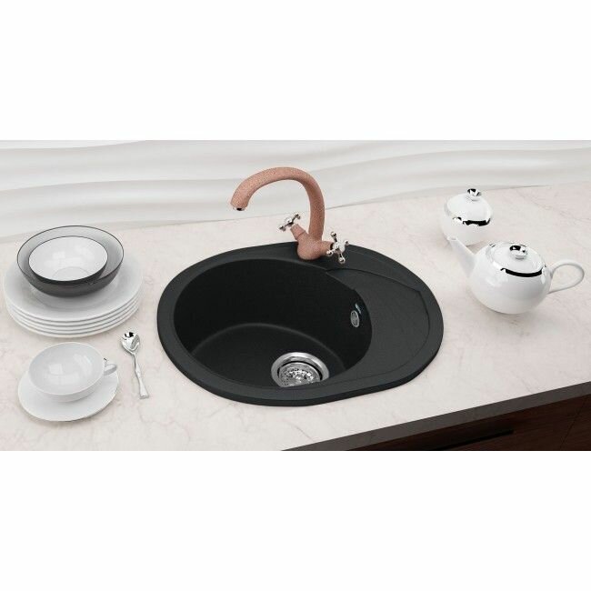 Мойка кухонная Ulgran из искусственного мрамора овальная U-403, цвет: черный, база: 54.5х44 см, арт. U-403-308