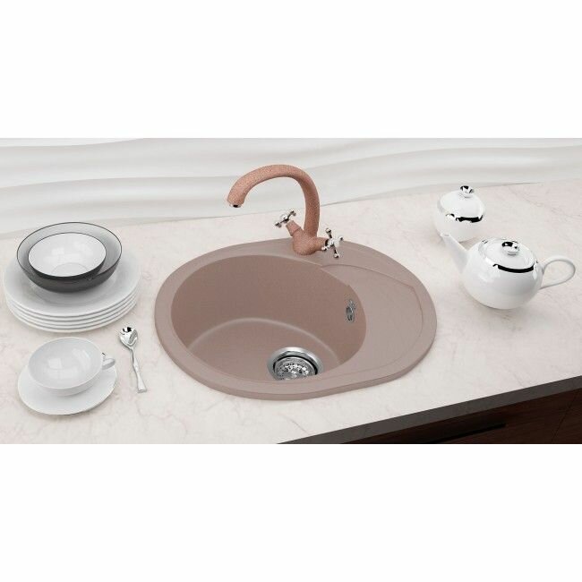 Кухонная мойка Карельский камень модель 150 (575*470) Q6 Слоновая кость