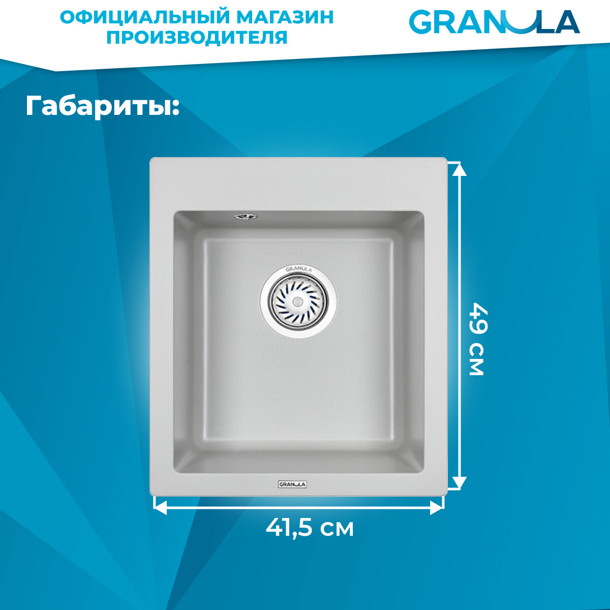 Кухонная мойка GRANULA 4201, кварц, 49см х 41.5см