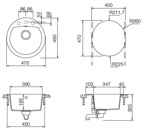 | Ширина мойки | 47 см |