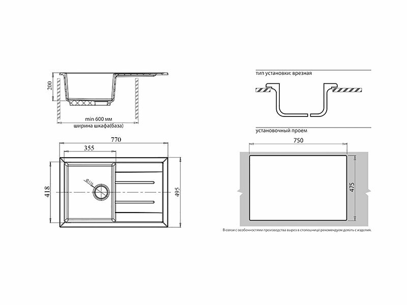 | Минусы: | Небольшие косяки по геометрии, но это скорее проблема технологии изготовления каменных моек. |