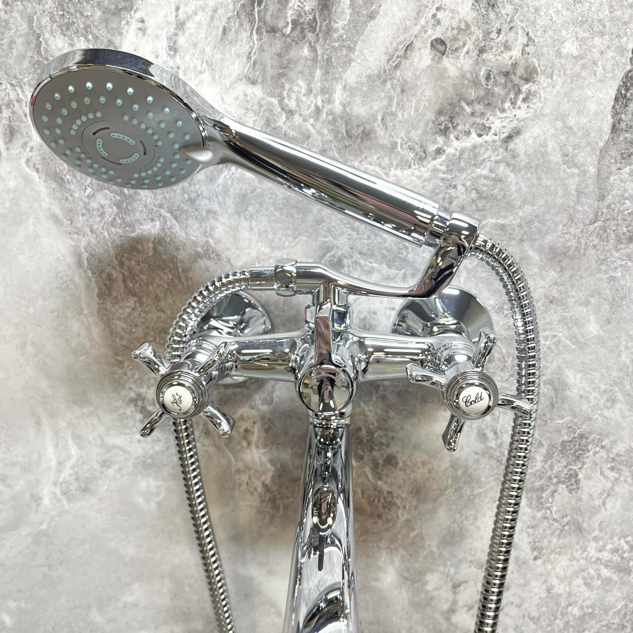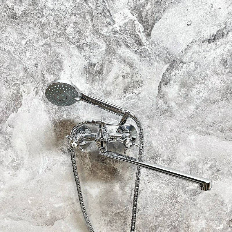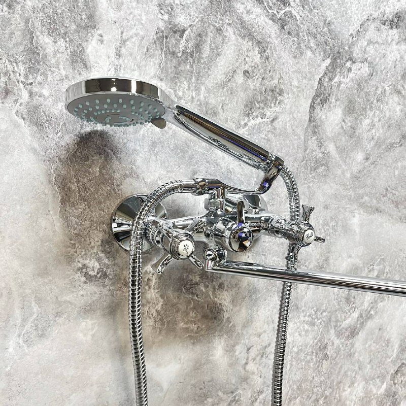 Смеситель для ванны,двуручковый, с длинным поворотным изливом в комплекте с лейкой