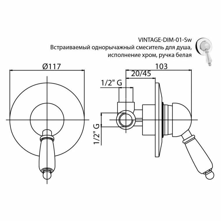 Смеситель Cezares Vintage-DIM-02-Sw для душа