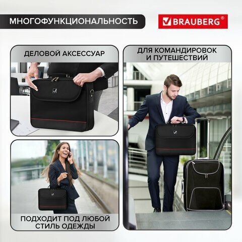Сумка деловая BRAUBERG с отделением для ноутбука 13.3", комплект 2 шт., "Profi", откидная крышка, черная, 35х25х7 см, 240440