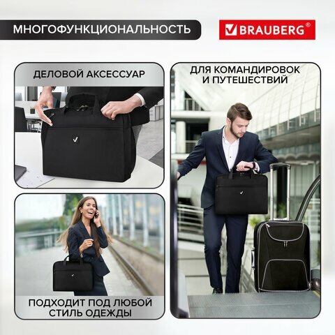 Сумка деловая BRAUBERG "Chance", 25х35х4 см, отделение для планшета и ноутбука 13,3", ткань,черная, 240455 240455