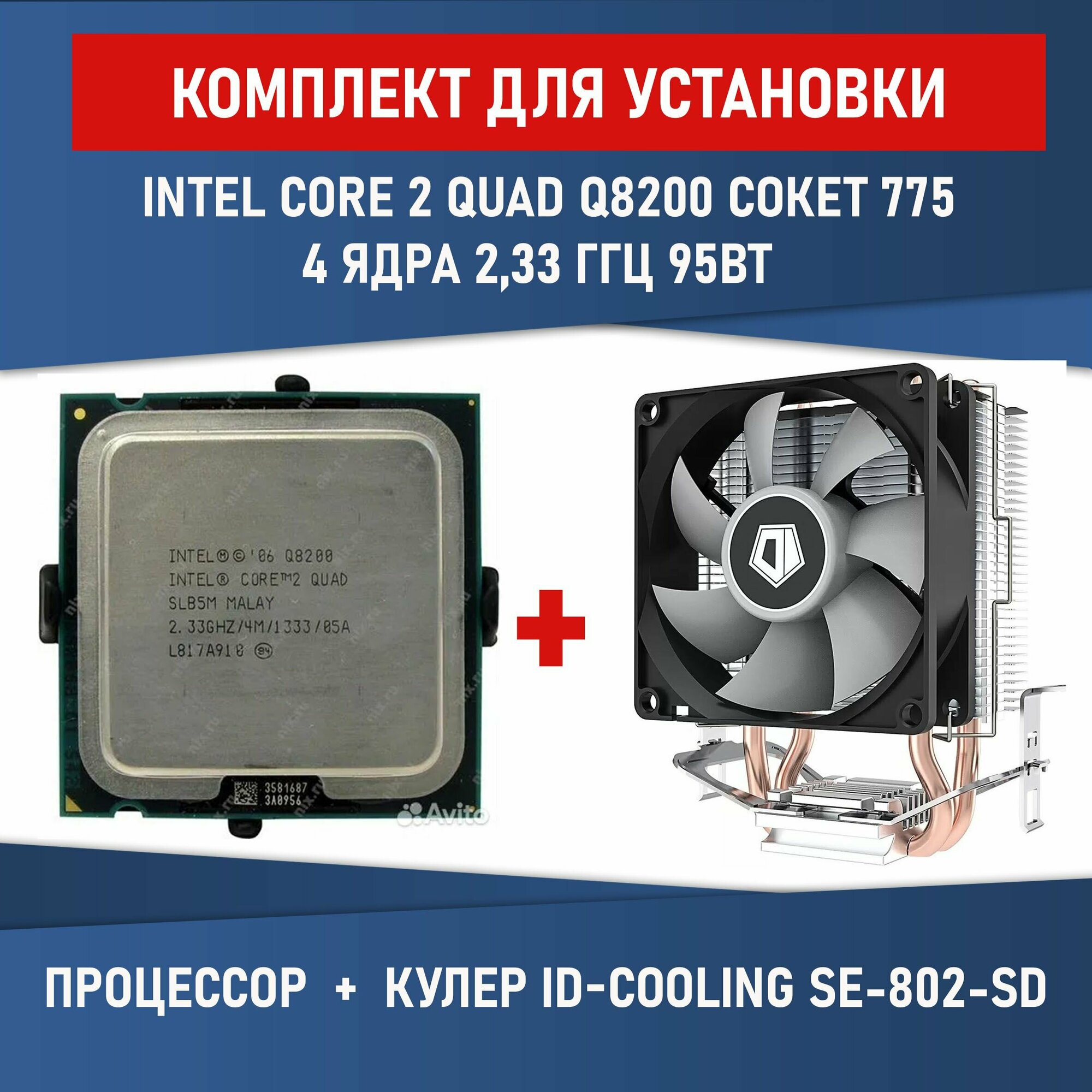 Купить Комплект для установки Процессор Intel Core 2 Quad Q8200 сокет 775 4 ядра 2,33 ГГц + Кулер ID-COOLING SE-802-SD V3