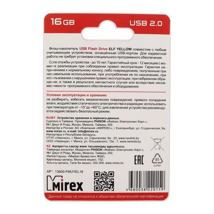 Ниже Вы можете прочитать отзывы на USB Флеш-накопитель MIREX ELF YELLOW 16GB, ознакомится с подробными характеристиками, посмотреть интересные обзоры и фотографии на USB Флеш-накопитель MIREX ELF YELLOW 16GB.