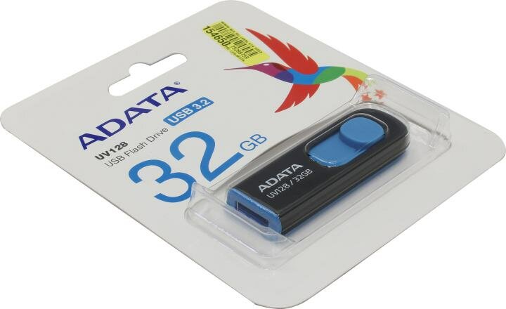 ADATA Накопитель USB flash 32ГБ ADATA FlashDrive UV128 AUV128-32G-RBE, черно-синий (USB3.1)