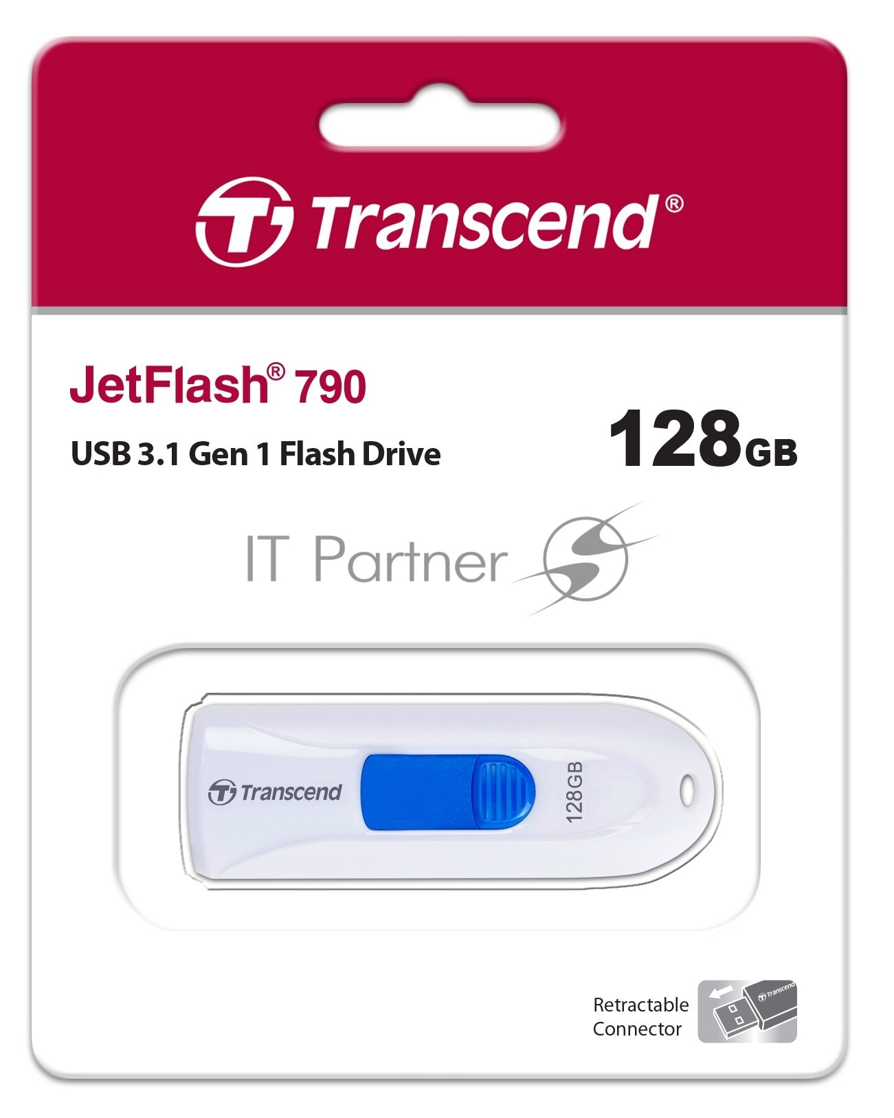 Флеш-память Transcend JetFlash 790, 128Gb, USB 3.1 G1, б/син, TS128GJF790W