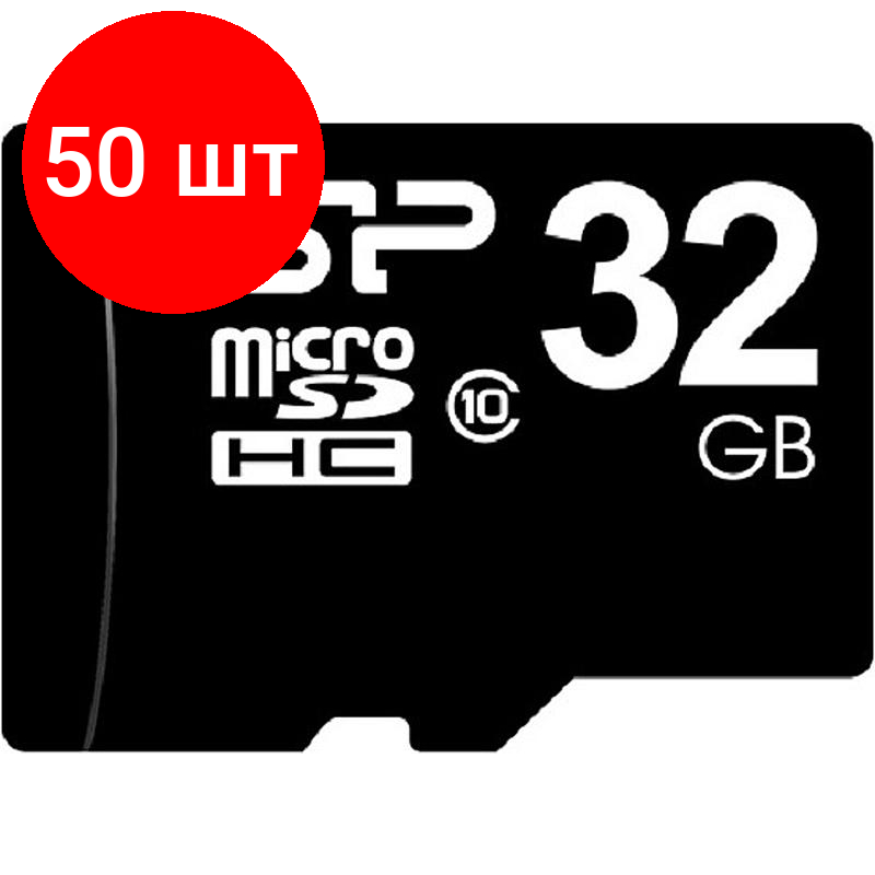 Купить Комплект 50 штук, Карта памяти Silicon Power 32Gb microSDHC/ SD адапт (SP032GbSTH010V10SP)