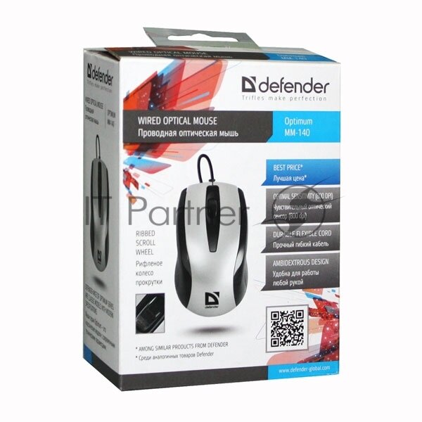 Мышь проводная DEFENDER Optimum MM-140 серебристый чёрный USB 52140