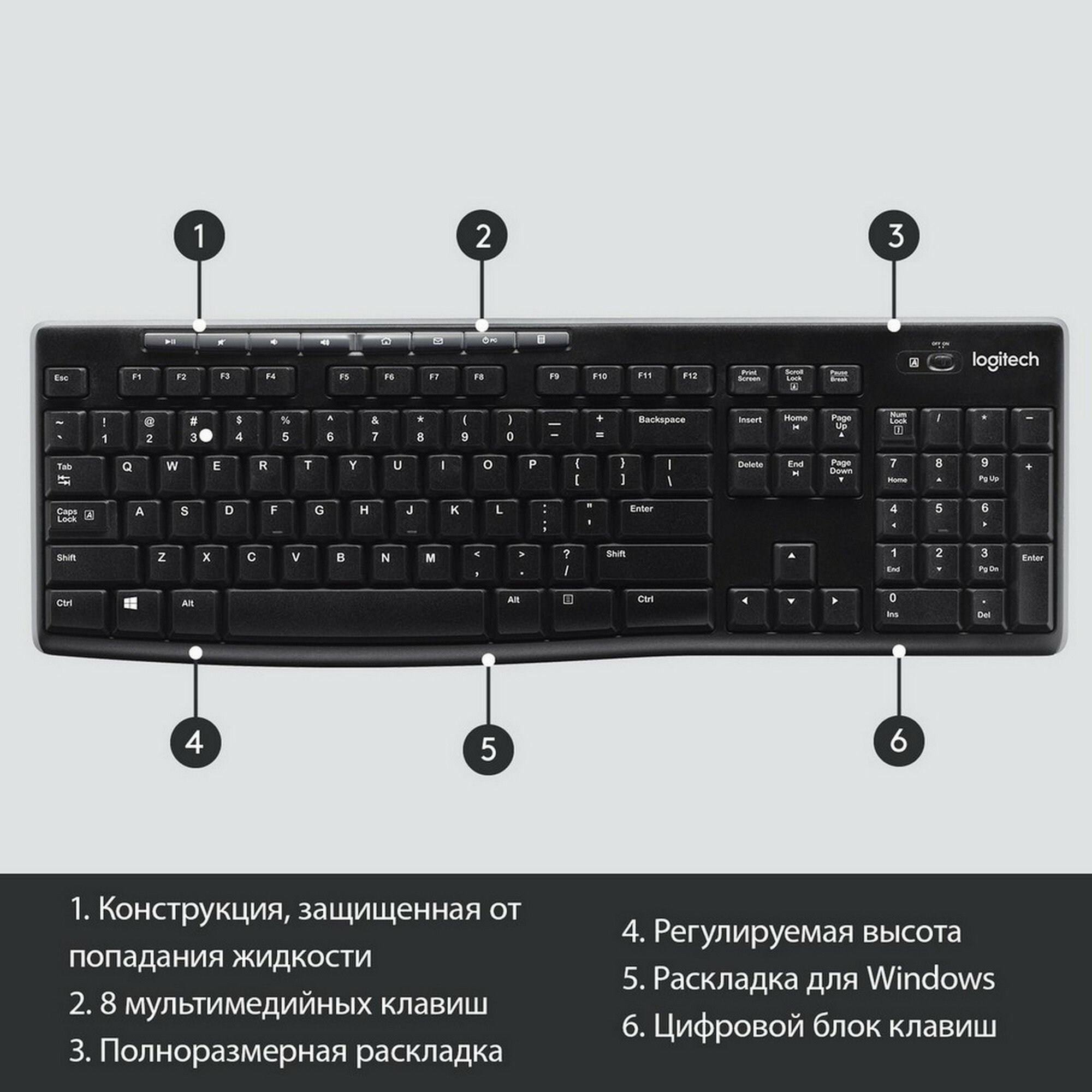 Клавиатура Logitech K270 черный/белый (920-003058), русская раскладка