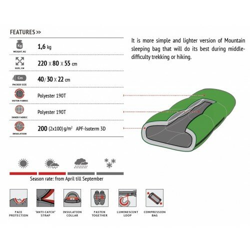 | Отзыв: | Хороший и недорогой спальник. Для того, чтобы пару раз за лето съездить за город его брать точно не стоит, потому что очень теплый и, как следствие, большой (даже в компрессионном мешке) и относительно тяжелый. Но как трехсезонник - он очень хорош. |