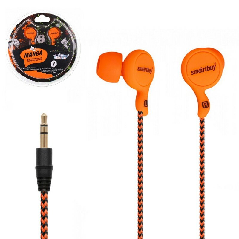 Наушники проводные пассивные SmartBuy MANGA, оранжевые (арт. SBE-1040)