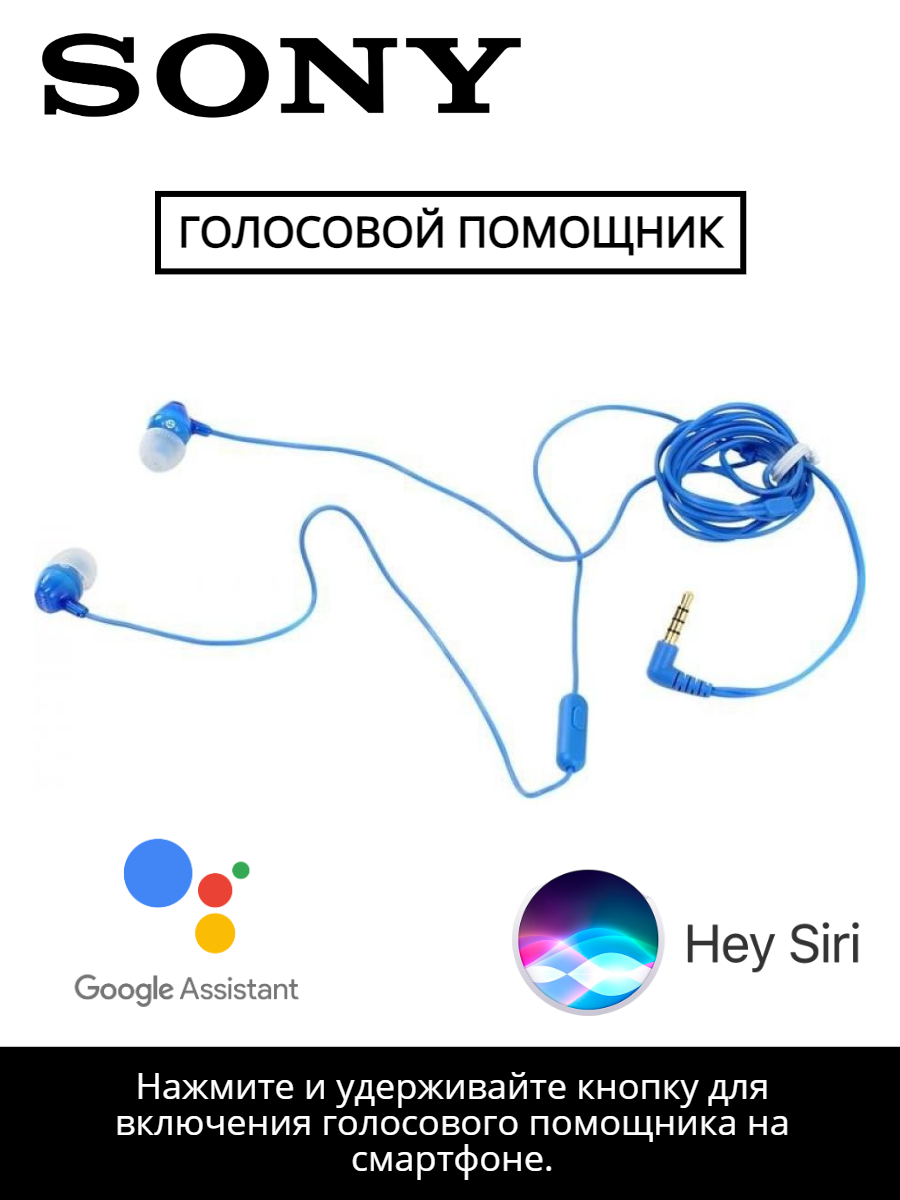 Наушники SONY MDR-EX15AP/LI проводные, вакуумные, 1,2м, синий