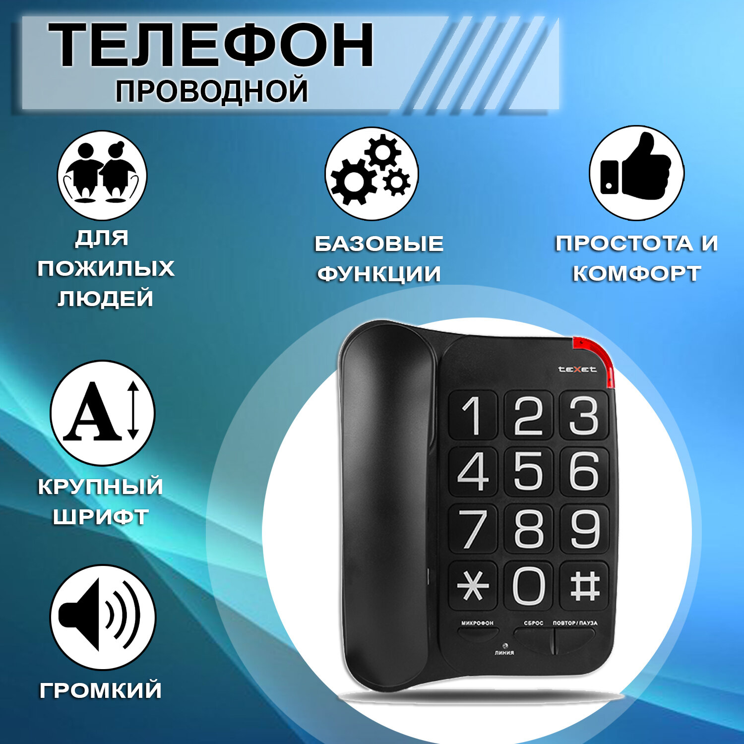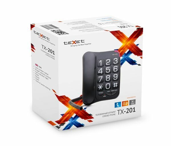 Телефон проводной teXet ТХ-201, повторный набор, крупные клавиши, черный ( Артикул 337859 )
