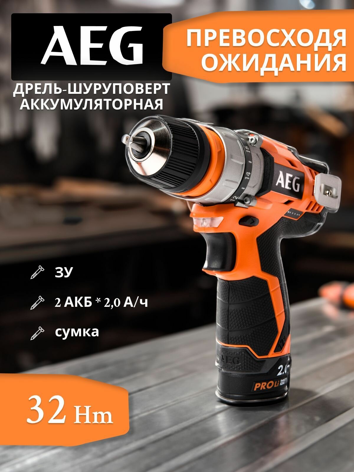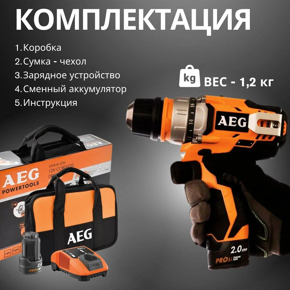 Аккумуляторная дрель-шуроповерт AEG Pro12V BBS12C2 Li-202, 2 аккумулятора по 2Ач