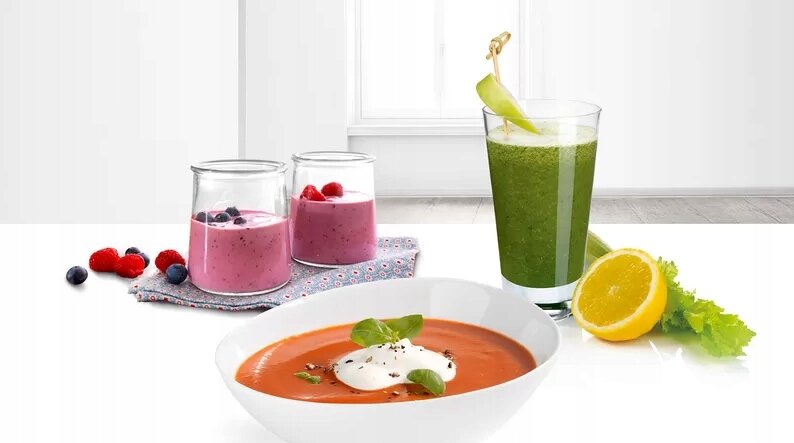 Удобная в эксплуатации - это очень важно, мыть и чистить легко (есть щетка). Стальной (а не керамический) нож и сетка. Две скорости работы, система стоп-капля (пригодиться) Довольно мощная, крепиться на трех присосках, что исключает вибрацию, тряску, скачки при работе. |
