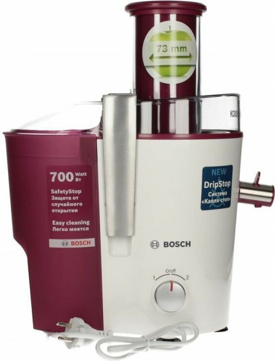 Центробежная соковыжималка Bosch MES25C0, белый/бордовый