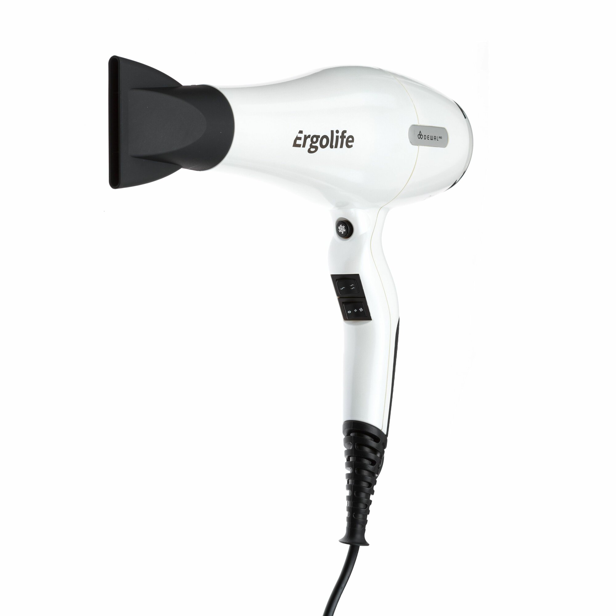 Купить Фен DEWAL ERGOLIFE, белый, вес 590гр, 2200Вт, ионизация, 2 нас, провод 3м