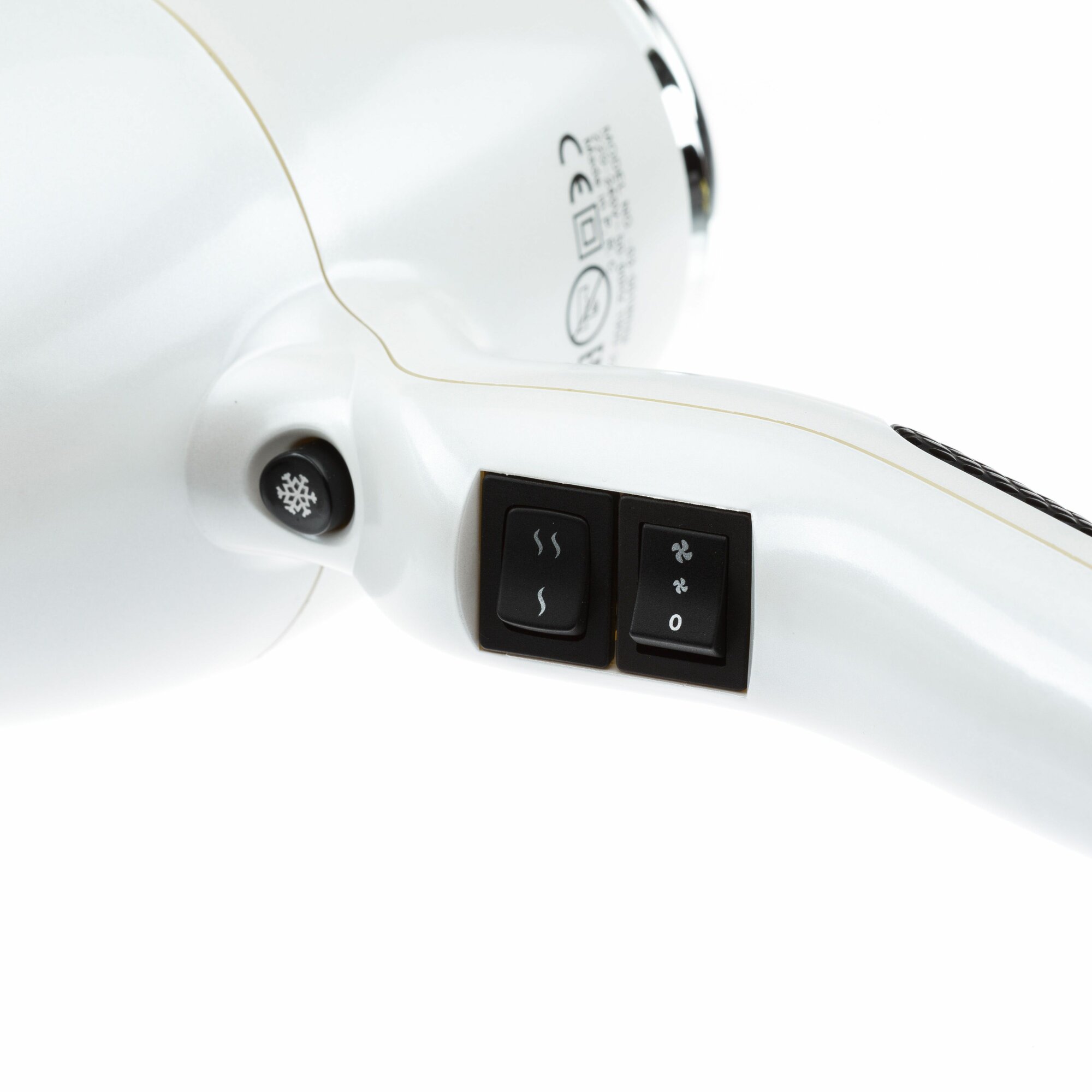 Фен DEWAL PRO ERGOLIFE c ионизацией, белый, вес 590 гр, 2200 Вт, 2 насадки, провод 3 м 03-001 White