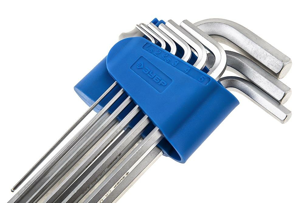 Набор ключей имбусовых ЗУБР "эксперт" длинные с шариком,Cr-Mo,сатинир покрытие,эргоном держатель,HEX 1,5 - 10 мм,9шт