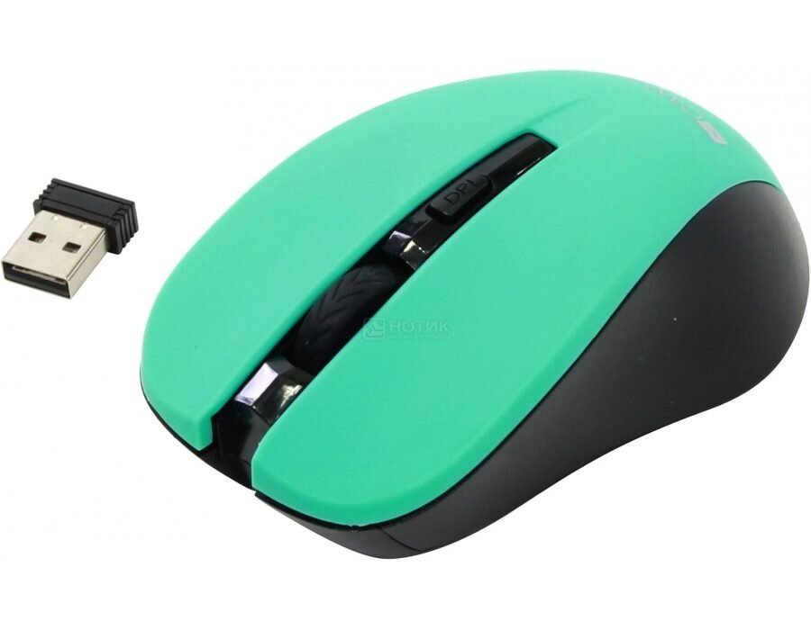 Мышь беспроводная CANYON CNE-CMSW1GR (Wireless, Optical 800/1000/1200 dpi, 4 btn, USB, power saving button) зелёный, USB